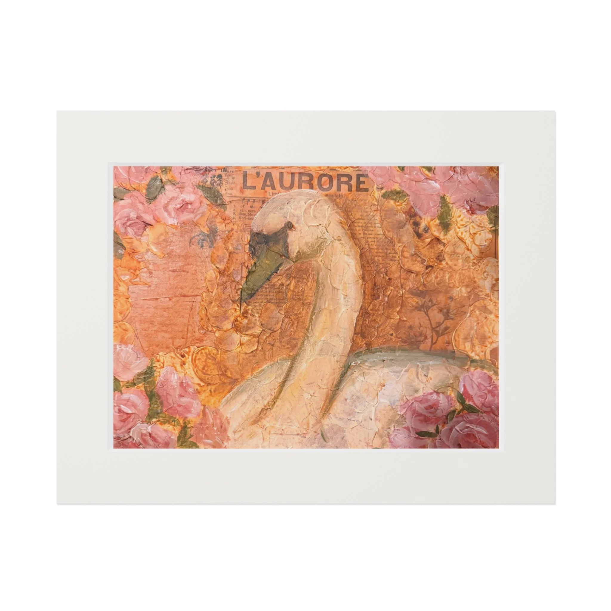 Soft, painterly tones meet museum-quality printmaking in this fine art passepartout. The giclée process preserves delicate color depth and painterly texture — the soft blushes, warm ochres, and faded text remain vivid, not washed out by sunlight. A crisp 2mm textured mountboard window gives the image breathing room and a gallery feel on your wall, while the natural white surround keeps the focus on the artwork. Ships flat; a little assembly places the print into the mount so you can style it in your own frame or let the clean natural border sit as a minimalist statement.